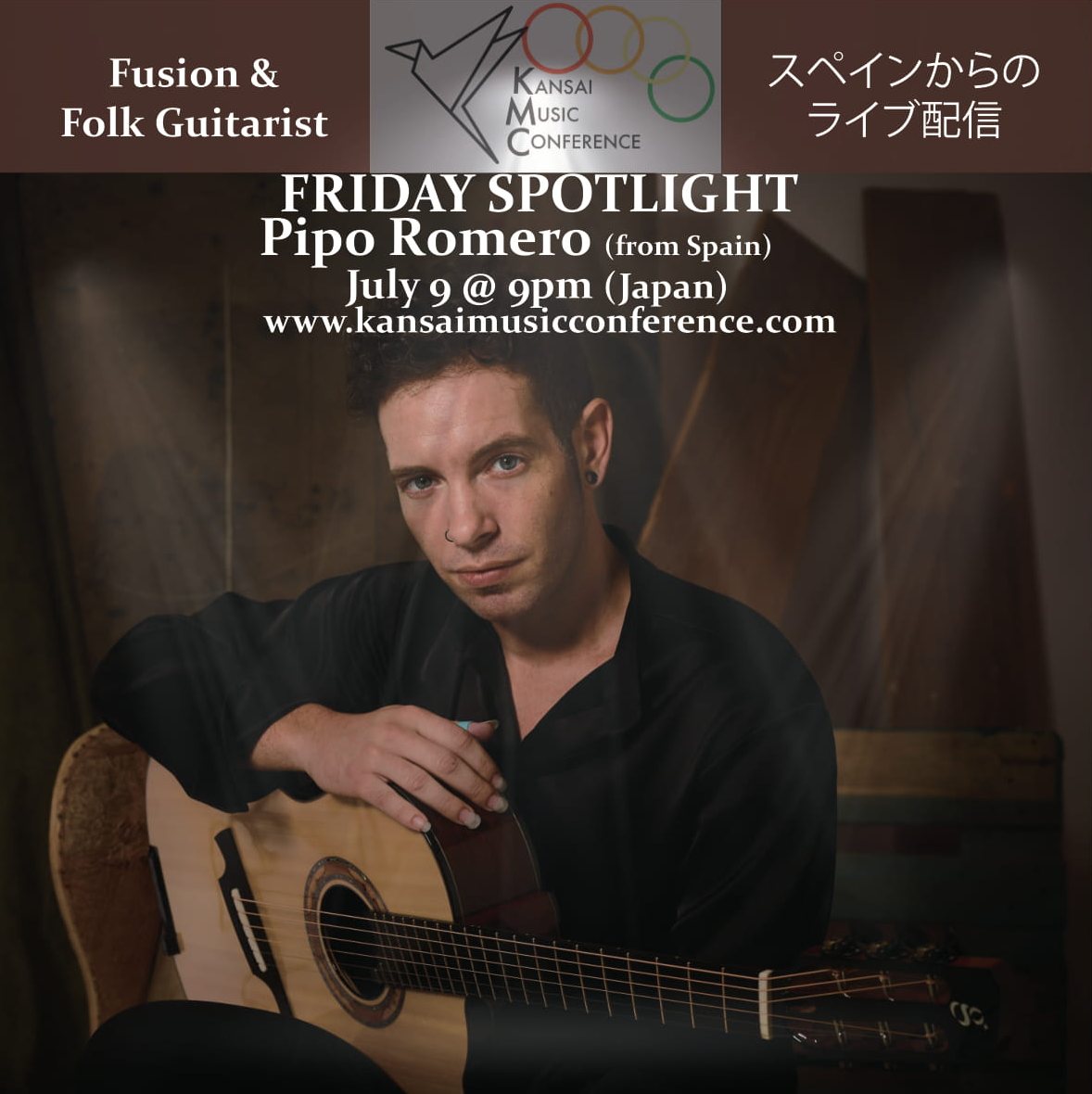 Pipo Romero, is a composer and acoustic guitarist whose compositions come from the heart, blending an original compendium of styles (folk, flamenco, classical, country, celtic music). His first album went straight into the top ten of WMCE (Nov. 2017). In early 2018, he was featured on the cover of Fingerstyle Guitar Journal as one of the most promising artists of the acoustic guitar world and in the fall, his second album was published with Universal Music.
